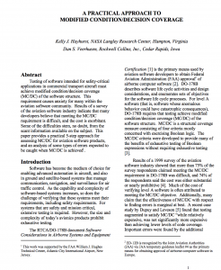 A PRACTICAL APPROACH TO MODIFIED CONDITION/DECISION COVERAGE -Kelly J. Hayhurst, Dan S. Veerhusen